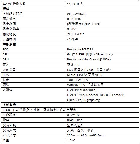 高靈敏度紅外相機(jī)高清可見(jiàn)光相機(jī) 用于遠(yuǎn)距離人體溫度檢測(cè) 1.5m~5m相機(jī)+主板+黑體一體式構(gòu)造,無(wú)需配置電腦,直接連接顯示器即可顯示和各種操作無(wú)需電腦,直接連接顯示器自帶黑體,自動(dòng)校正,無(wú)懼環(huán)境溫度變化對(duì)熱成像的影響精準(zhǔn)額溫算法測(cè)量,過(guò)濾背景高溫影響輕松連接云端進(jìn)行數(shù)據(jù)分析